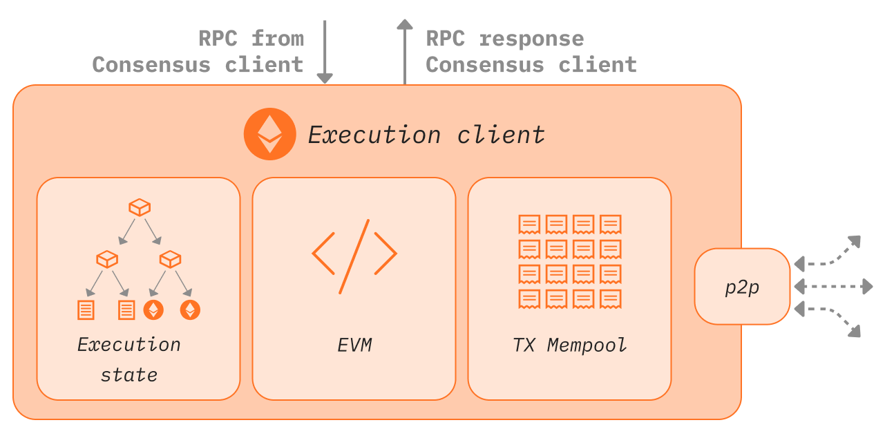 Network layer schematic for consensus and execution clients, from ethresear.ch
